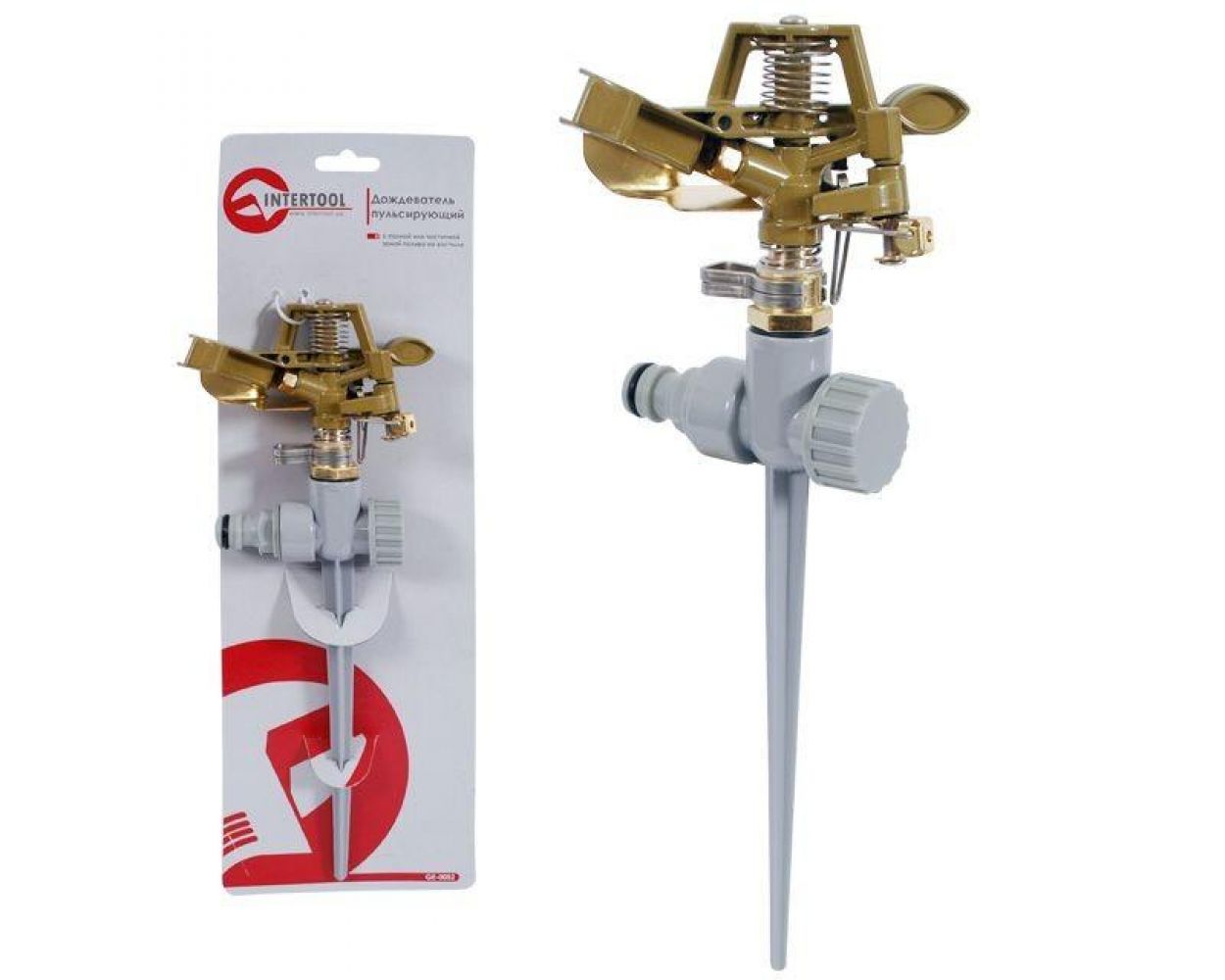 Теги: Дождеватель пульсирующий с полной/частичной зоной полива на костыле, круг/сектор полива до 12 м. Brass, Zinc all INTERTOOL, GE-0052
