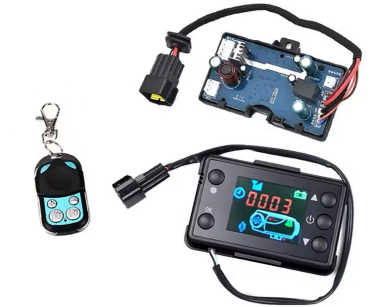 Контроллер и дисплей с пультом дистанционного управления — это универсальный набор, подходящий для большинства автомобильных отопителей мощностью 2–12 кВт.