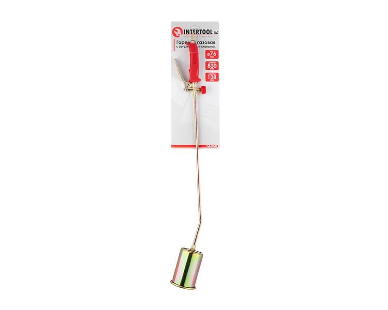 Теги: Горелка газовая с регулятором и клапаном 830мм, сопло 138мм, Ø76мм. INTERTOOL, GB-0047