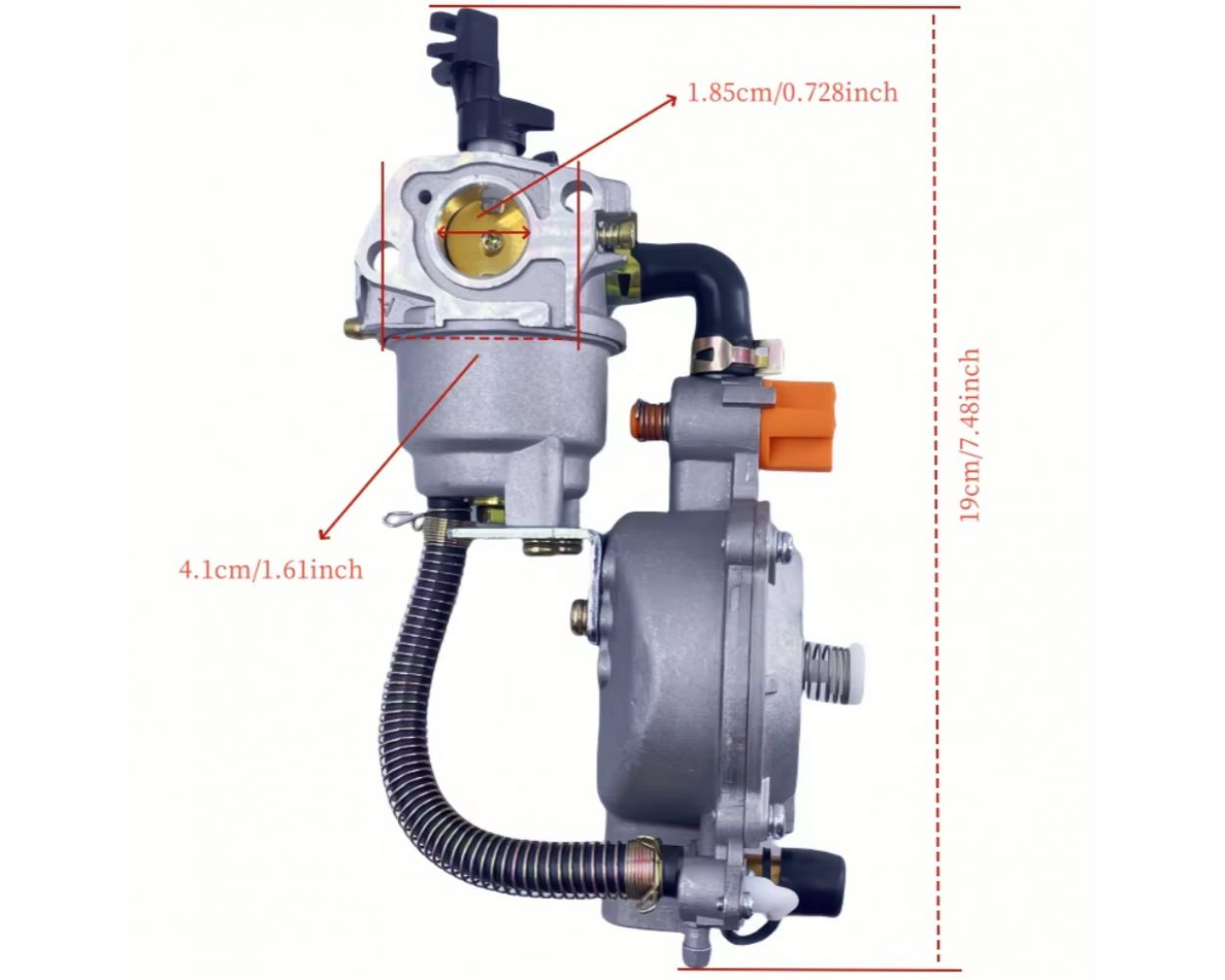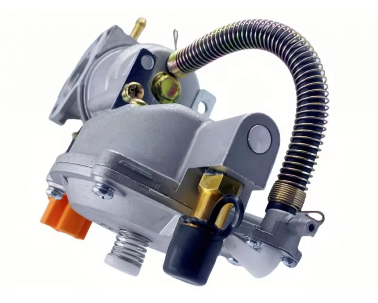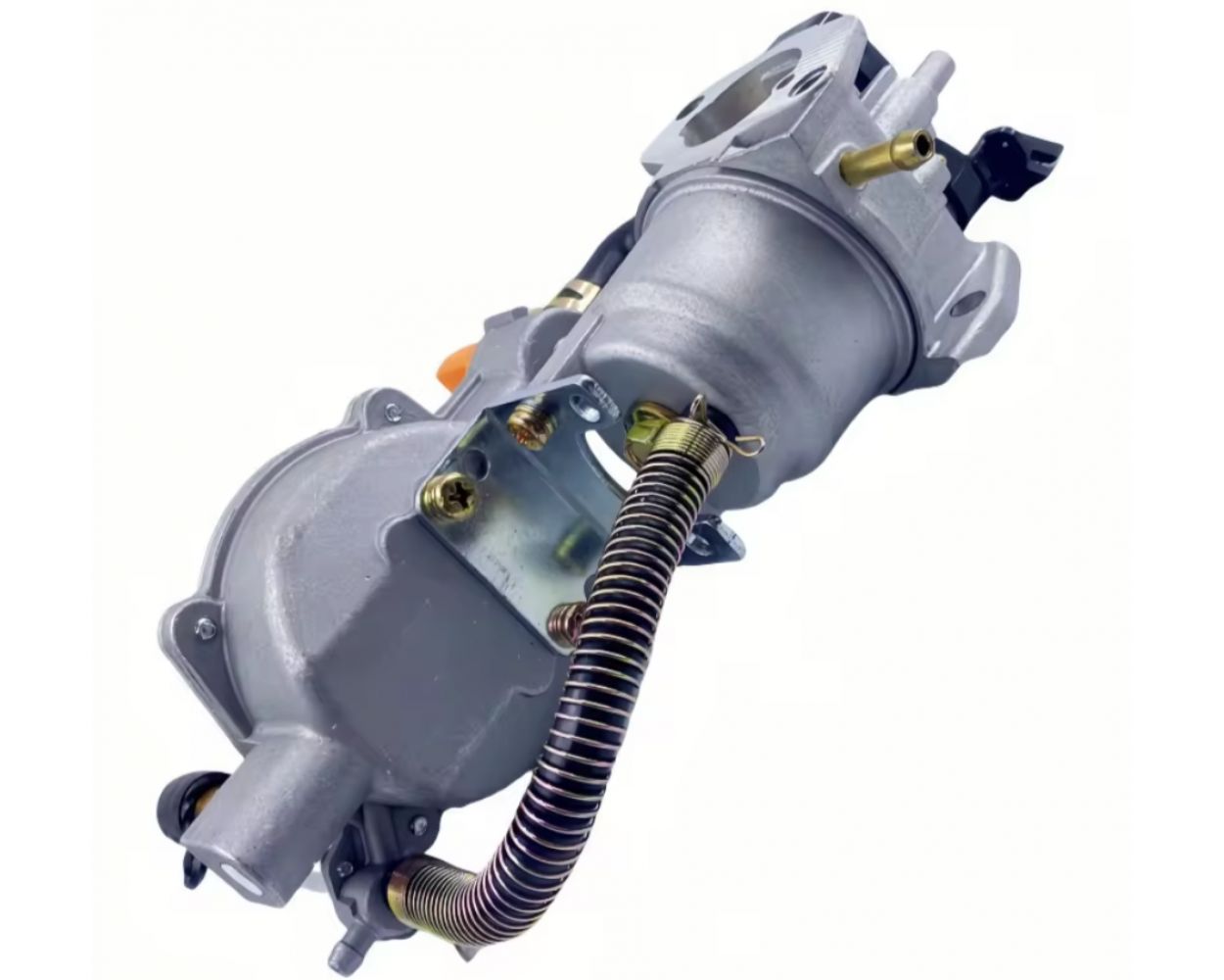 Карбюратор с газовым редуктором для генератора, на котором установлен двигатель. Благодаря этому устройству, вы сможете существенно сократить затраты на топливо. Установив карбюратор с газовым редуктором на генератор, вы сможете стационарно запитать его от магистральной трубы, подведенной к дому, или от балона. Таким образом генератор на газе будет работать длительное время. На редукторе есть переключатель красного цвета.
