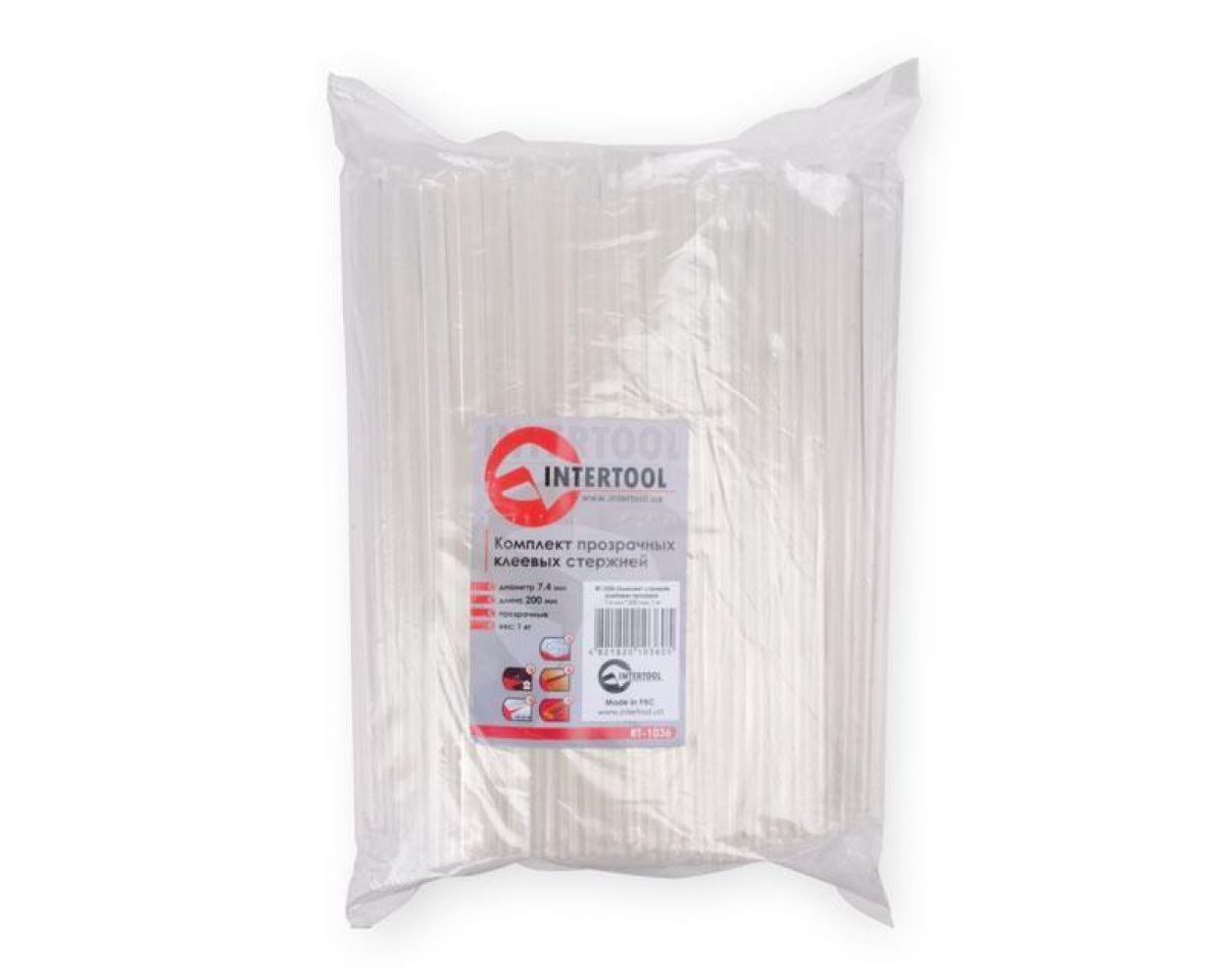 Теги: Комплект прозрачных клеевых стержней 7.4мм*200мм, уп. 1кг INTERTOOL, RT-1036