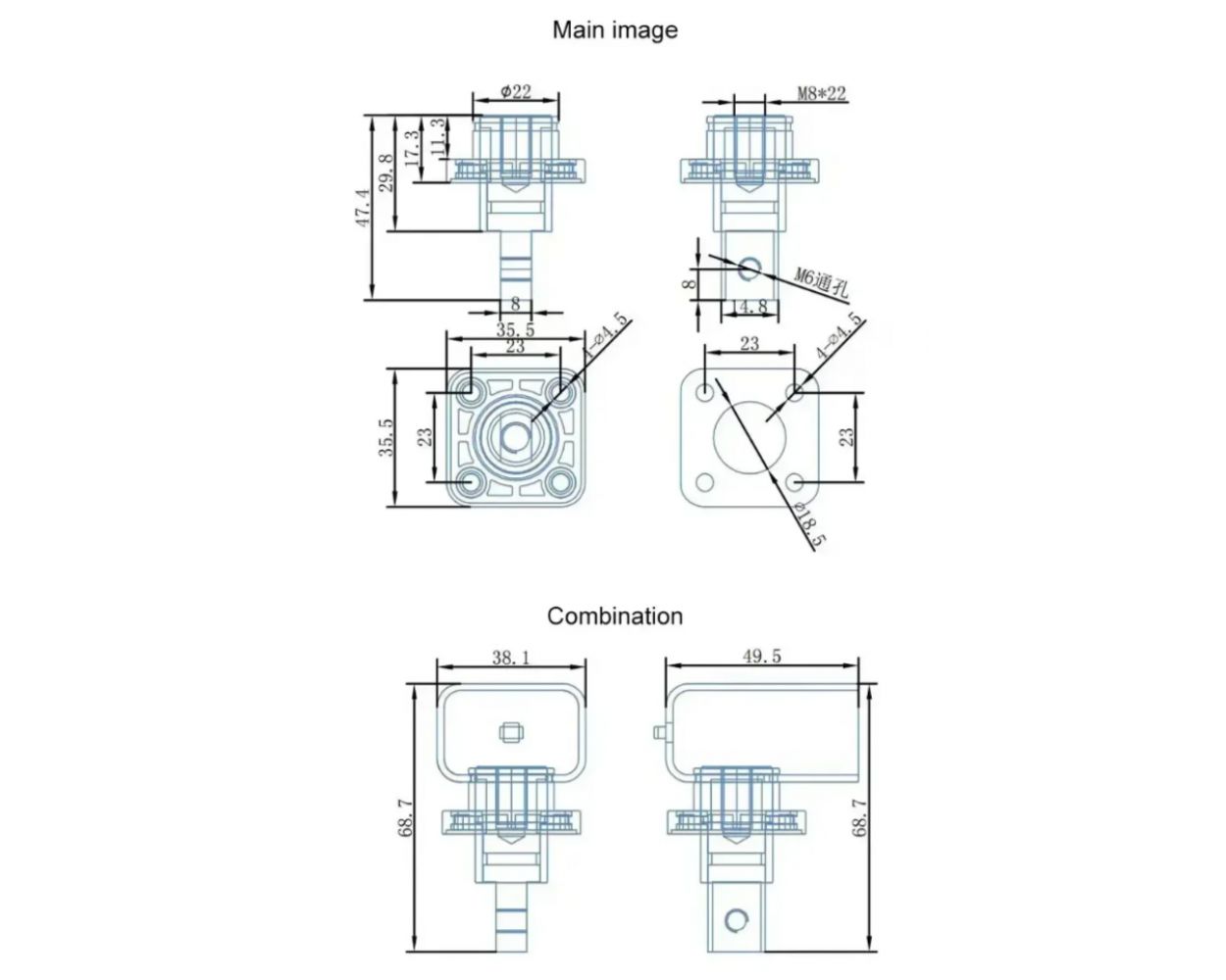 Винтовое соединение внутреннее: М6