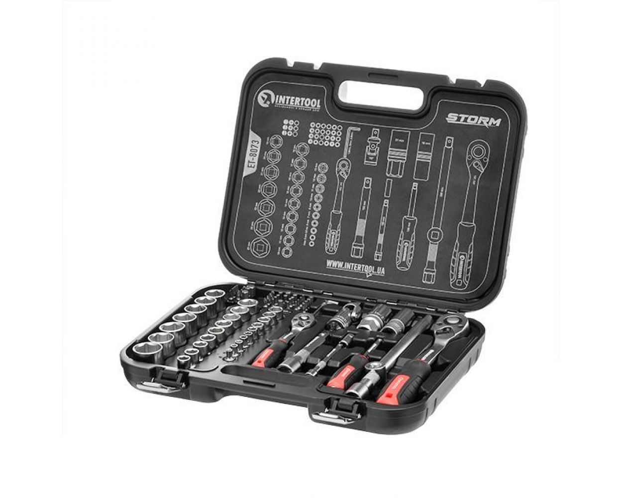 Теги: Набор инструментов 73 ед. STORM, 1/2, 1/4, Сr-V INTERTOOL, ET-8073