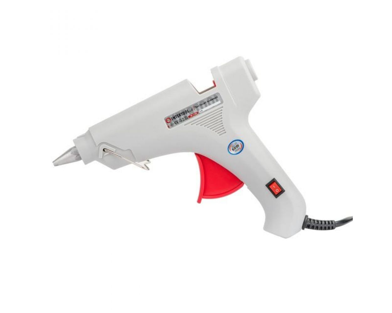 Теги: Пистолет клеевой 60(185)Вт, 230В, 165-180°C под стержни 10.8-11.5мм, 8-20 г/мин., выключатель. INTERTOOL, RT-1103
